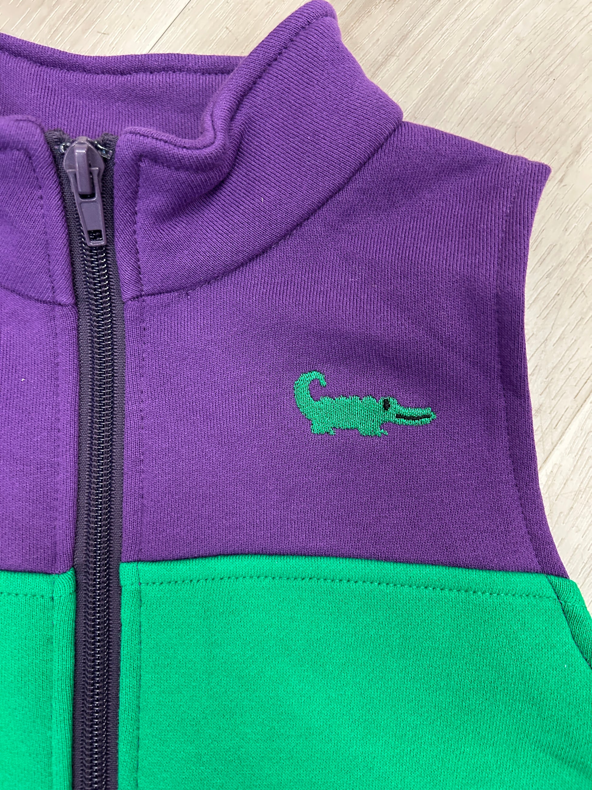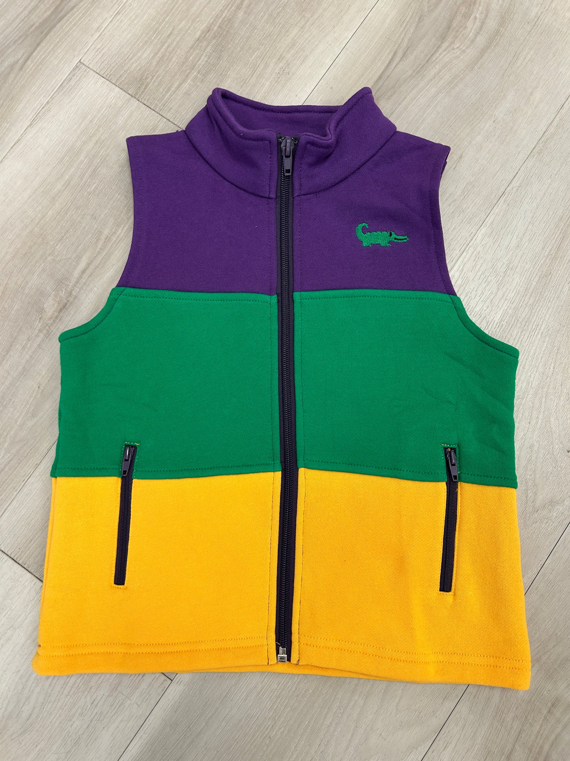 Bring the festive spirit of Mardi Gras to life with this vibrant vest designed just for kids! Featuring the iconic colors of the season, this Lulu Bebe vest lets your little ones celebrate in style. Perfect for parades, parties, or holiday photos, it's the ideal way to get them excited about the festivities. Comfortable, colorful, and full of fun—your child will love showing off their Mardi Gras spirit!
